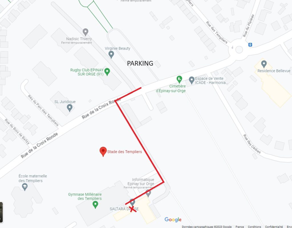 Nos parties ont lieu dans les salles «Yvette, Rouillon et Renarde» du complexe sportif des Templiers (voir plan ci-dessous)